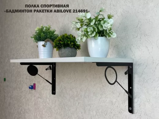 В корзину Купить в 1 клик Полка спортивная "БАДМИНТОН РАКЕТКИ ABILOVE-214691" для кубков, сосна выбеленная, размер 30х60см