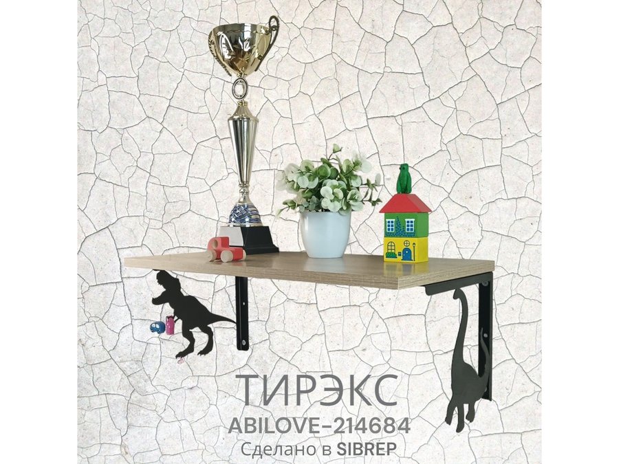 В корзину Купить в 1 клик Полка с динозаврами "ТИРЭКС ABILOVE-214686" для конструкторов, машинок, венге, 30х60см