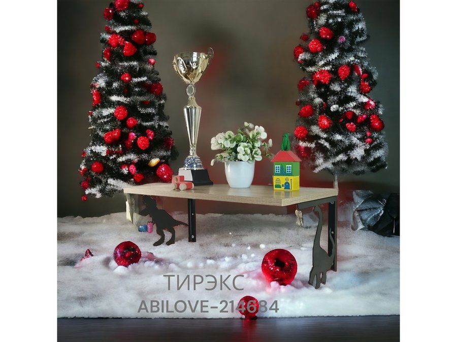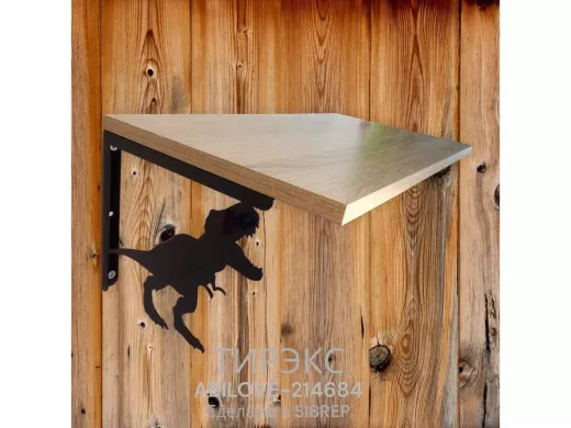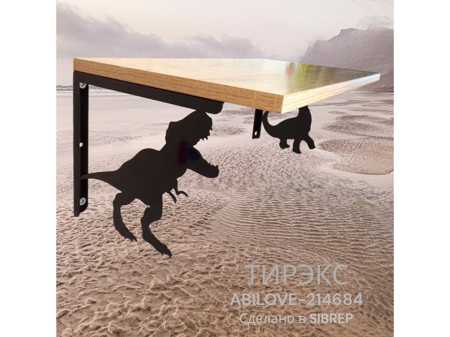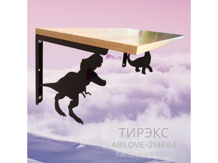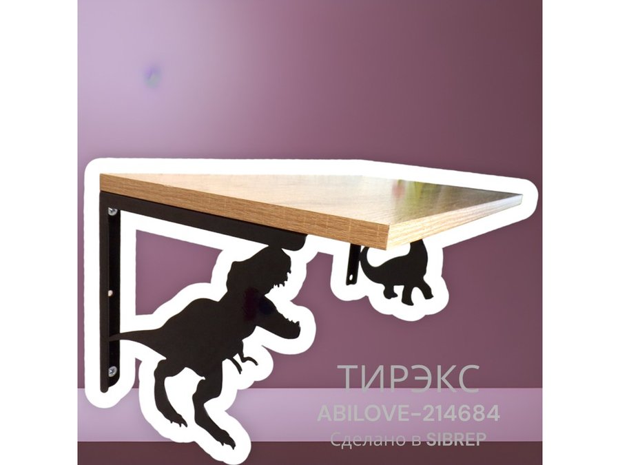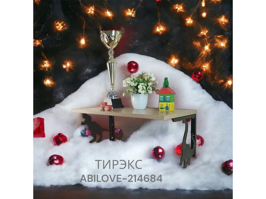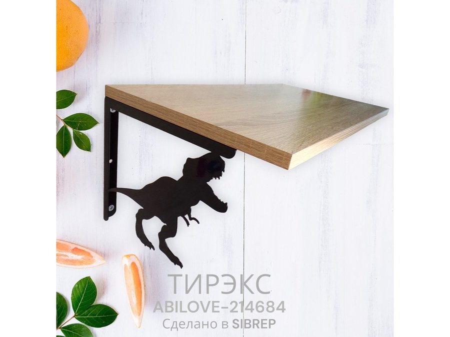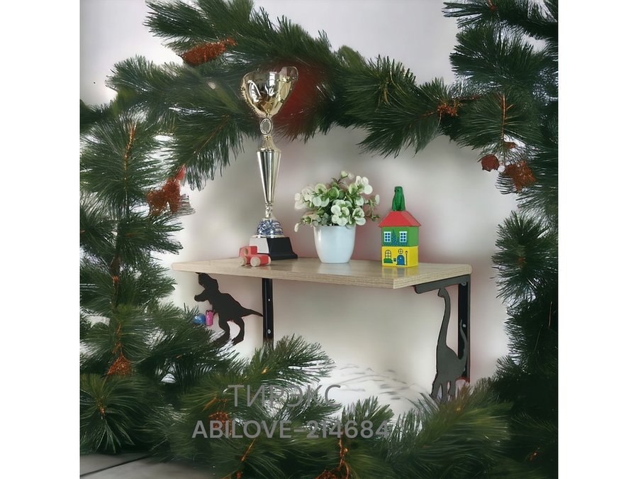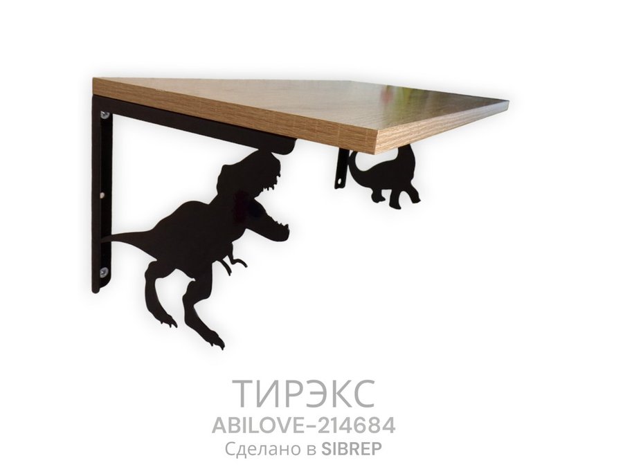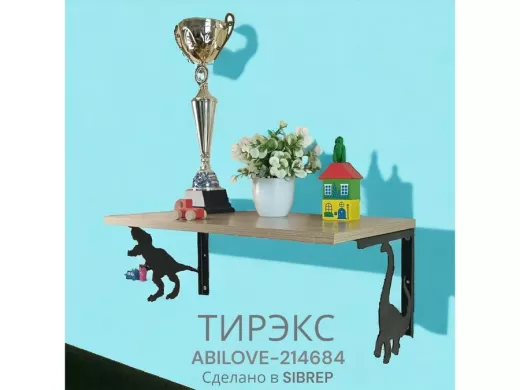 Полка с динозаврами "ТИРЭКС ABILOVE-214684" для конструкторов, машинок, дуб сонома, 30х60см