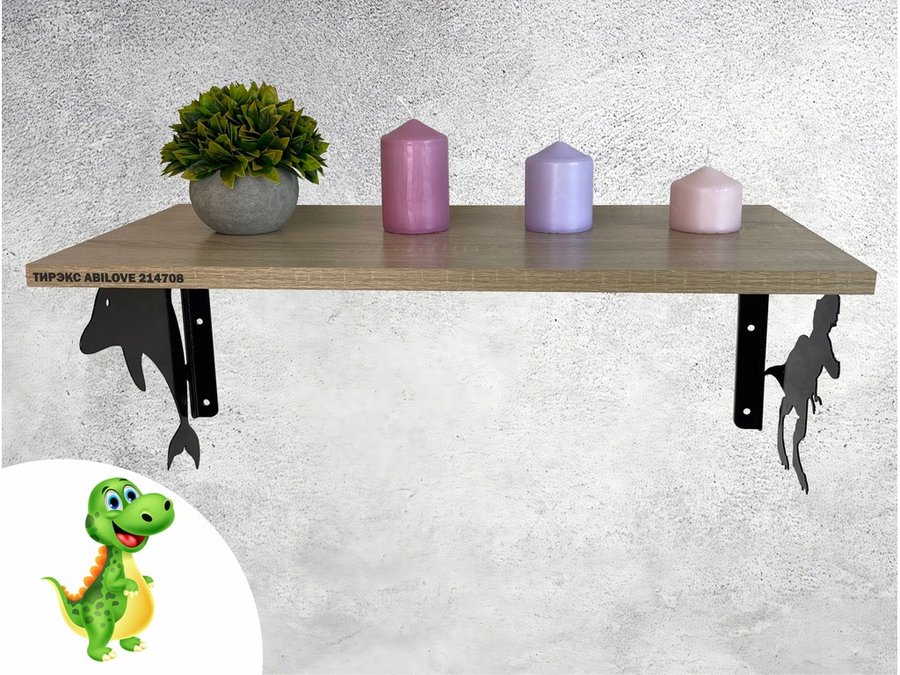 Полка с динозавром и дельфином "ТИРЭКС ABILOVE-214708" для игрушек, дуб сонома, 30х60см