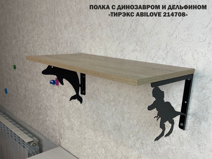 В корзину Купить в 1 клик Полка с динозавром и дельфином "ТИРЭКС ABILOVE-214708" для игрушек, дуб сонома, 30х60см