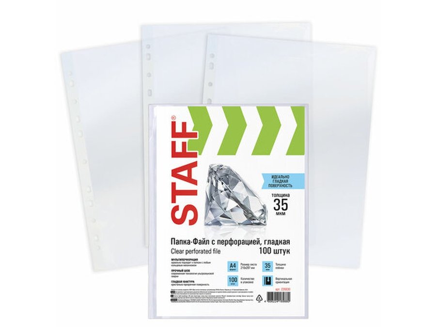 В корзину Купить в 1 клик Папки-файлы перфорированные А4 "BR-76073", КОМПЛЕКТ 100 шт., гладкие, 35 мкм