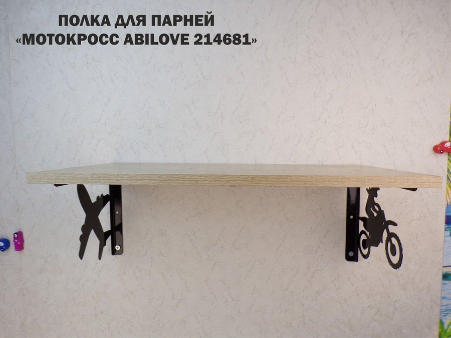 В корзину Купить в 1 клик Полка для парней "МОТОКРОСС ABILOVE-214681" для кубков и аксессуаров, дуб сонома, 30х60см