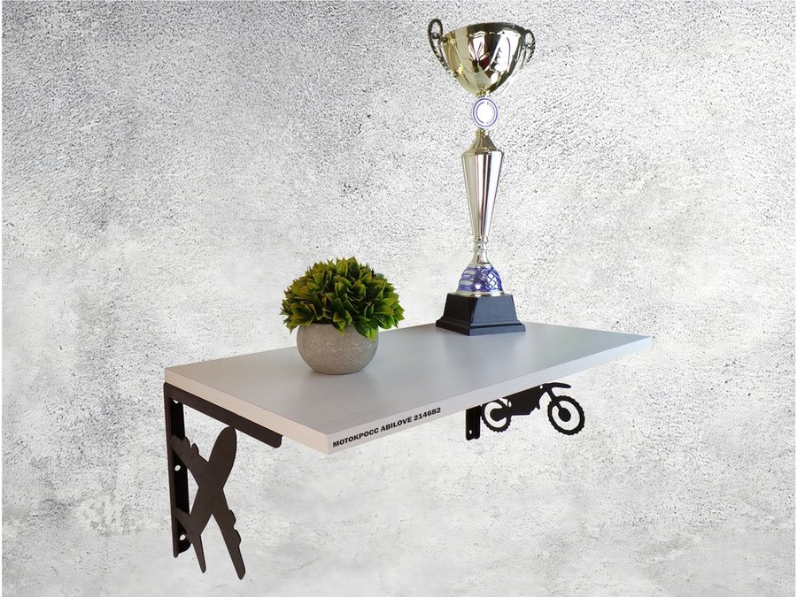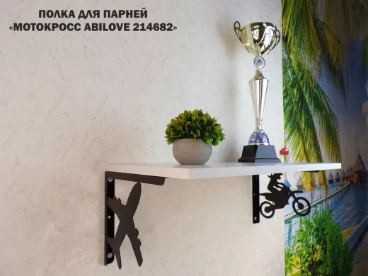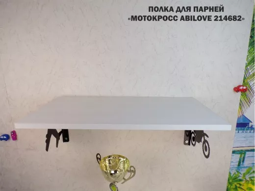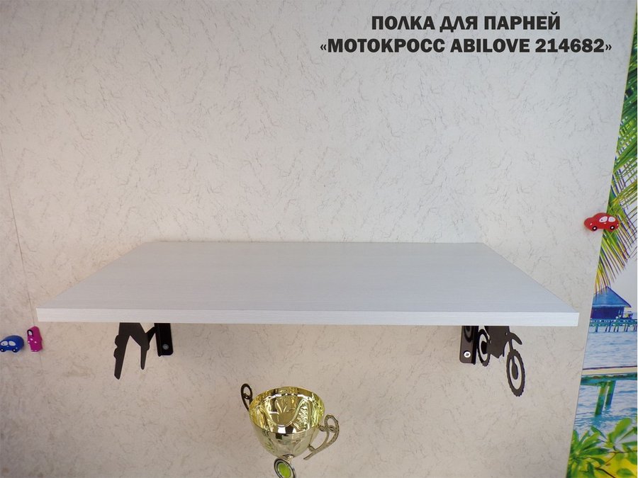 Полка для парней "МОТОКРОСС ABILOVE-214682" для кубков и аксессуаров, сосна выбеленная, 30х60см