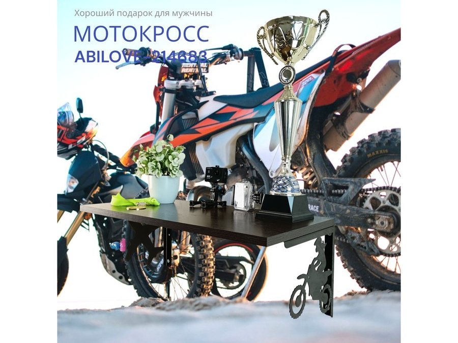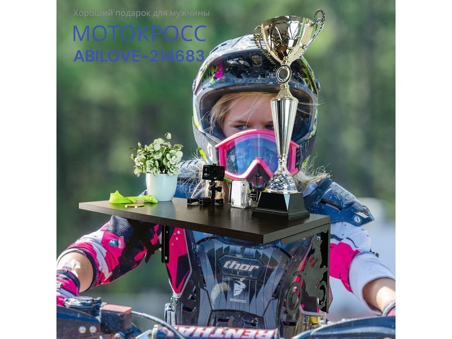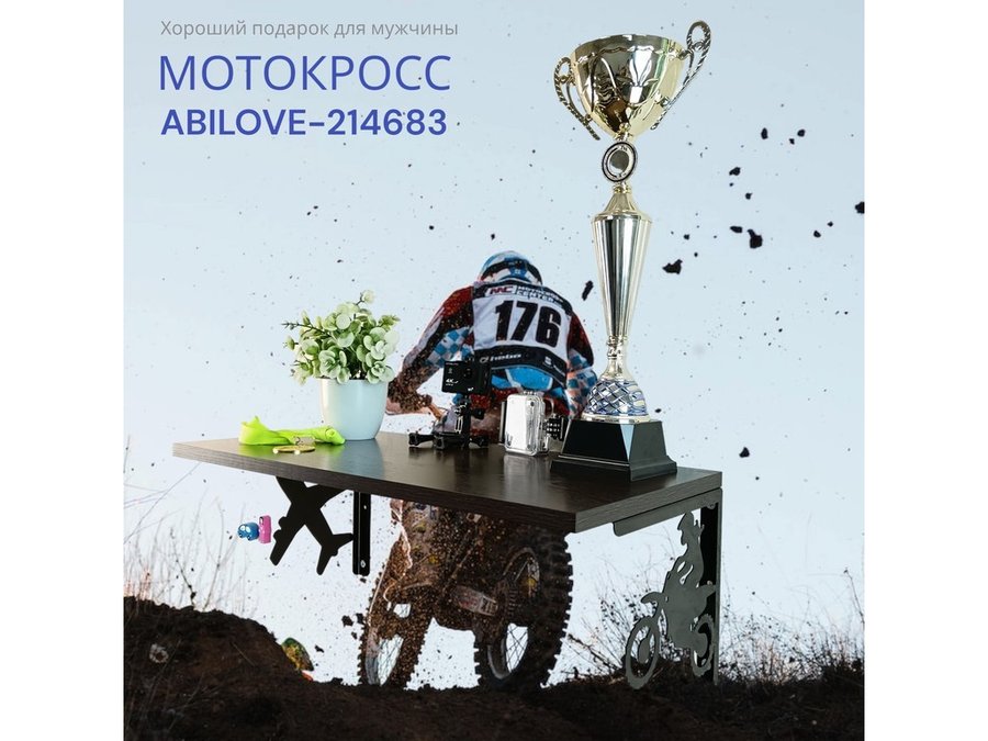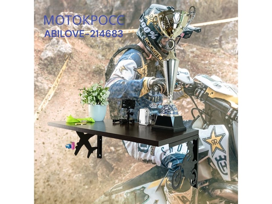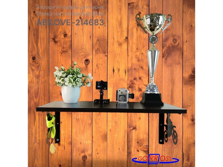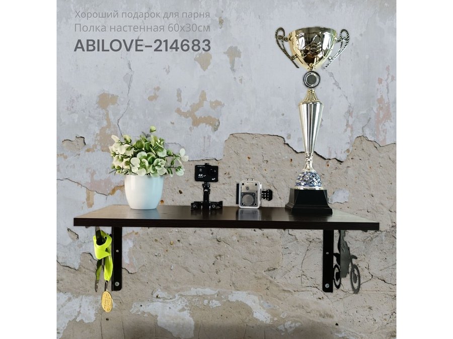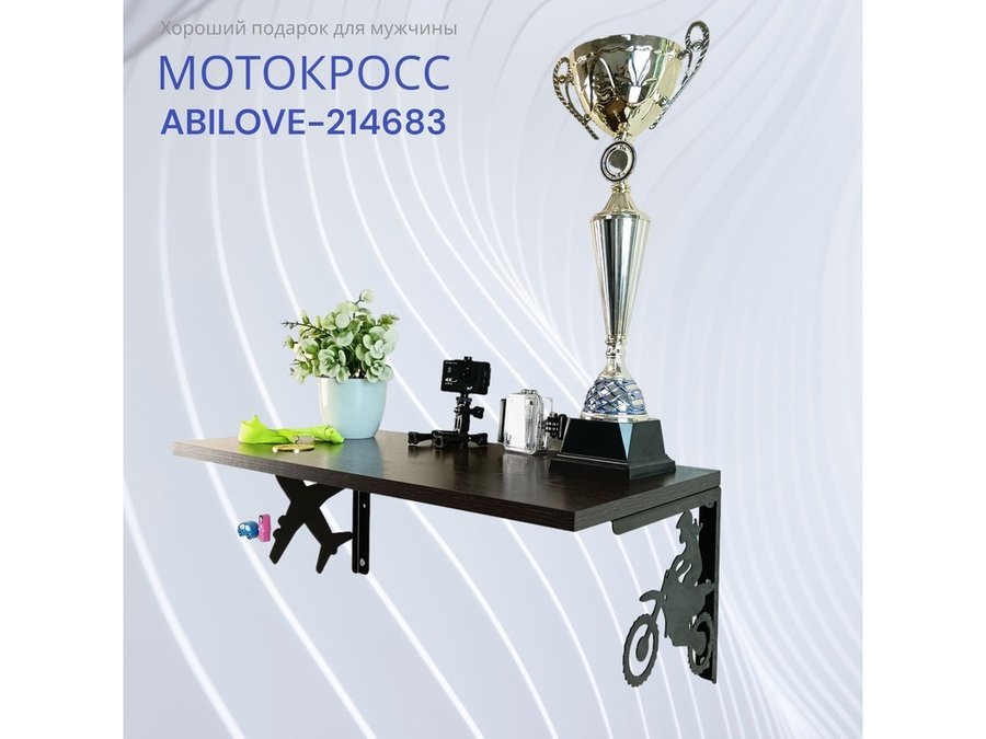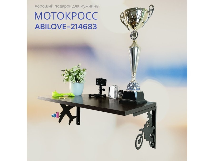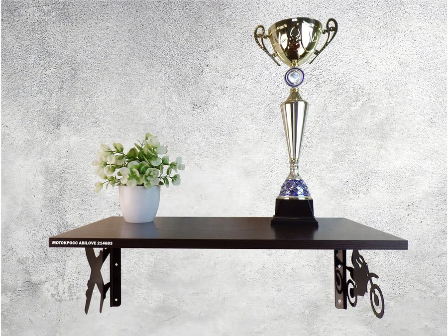 Полка для парней "МОТОКРОСС ABILOVE-214683" для кубков и аксессуаров, венге, 30х60см