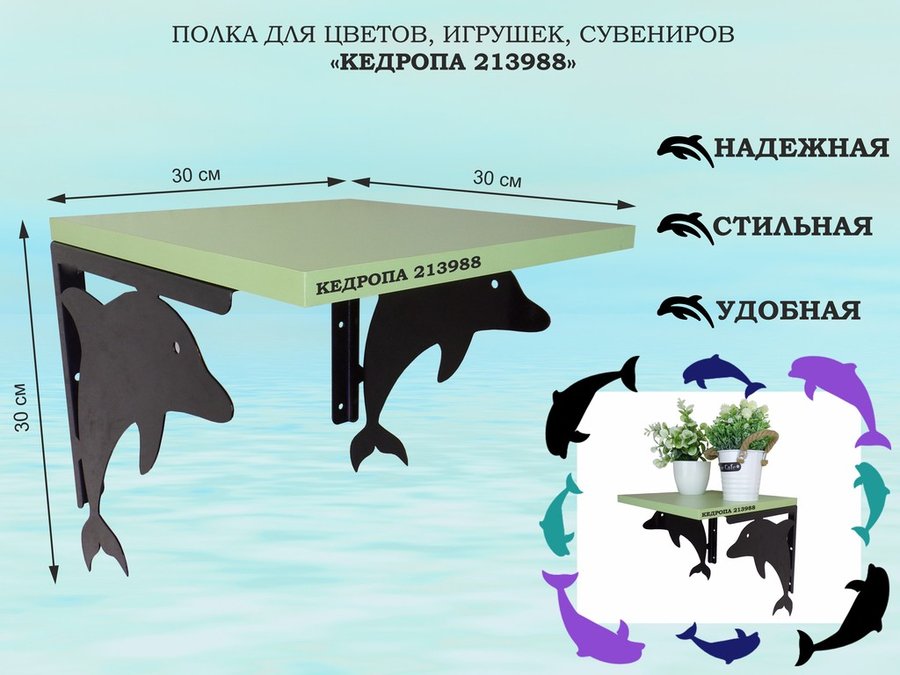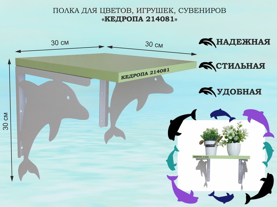 В корзину Купить в 1 клик Полка для цветов, игрушек, сувениров "КЕДРОПА-214081"размер 30х30x30 см, серый, салатовый