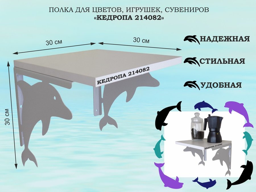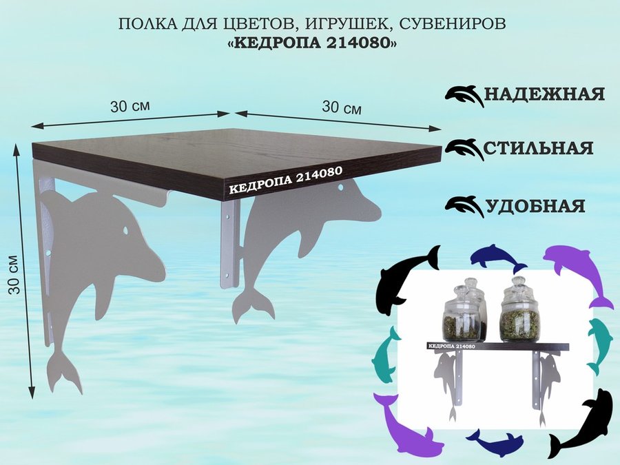В корзину Купить в 1 клик Полка для цветов, игрушек, сувениров "КЕДРОПА-214080"размер 30х30x30 см, серый, венге
