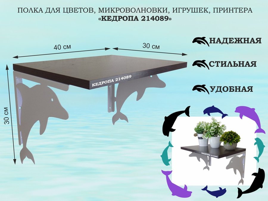В корзину Купить в 1 клик Полка для цветов, микроволновки, игрушек, принтера "КЕДРОПА-214105"размер 30х40x30 см, черный, дуб