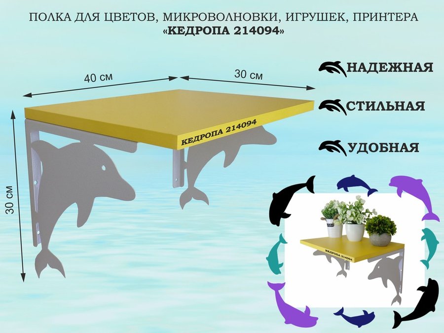 В корзину Купить в 1 клик Полка для цветов, микроволновки, игрушек, принтера "КЕДРОПА-214094"размер 30х40x30 см, серый, желтый