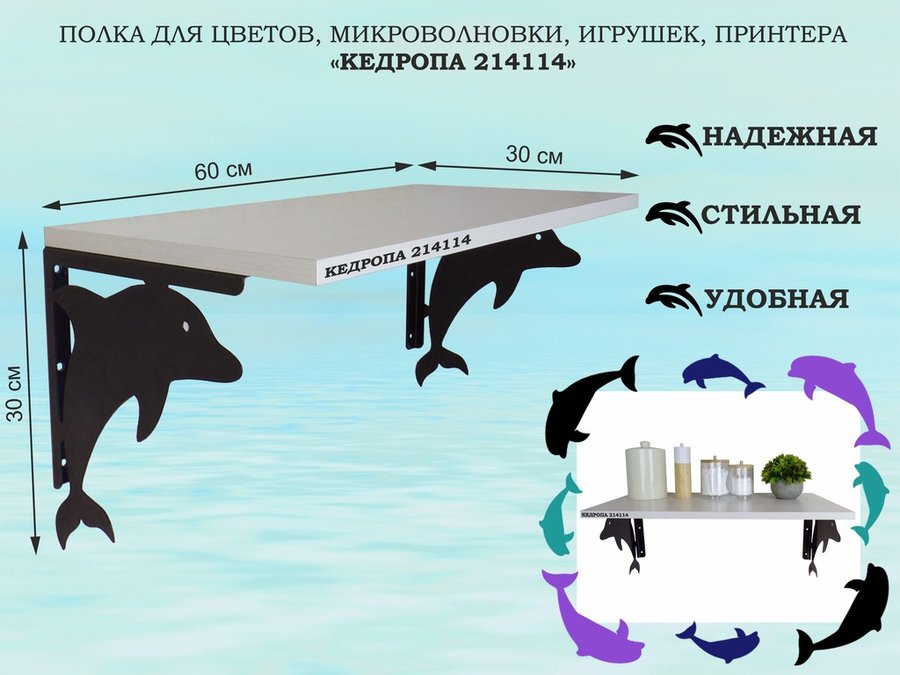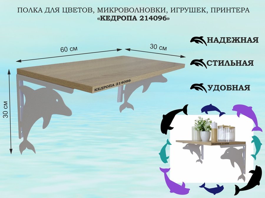В корзину Купить в 1 клик Полка для цветов, микроволновки, игрушек, принтера "КЕДРОПА-214096"размер 30х60x30 см, серый, дуб