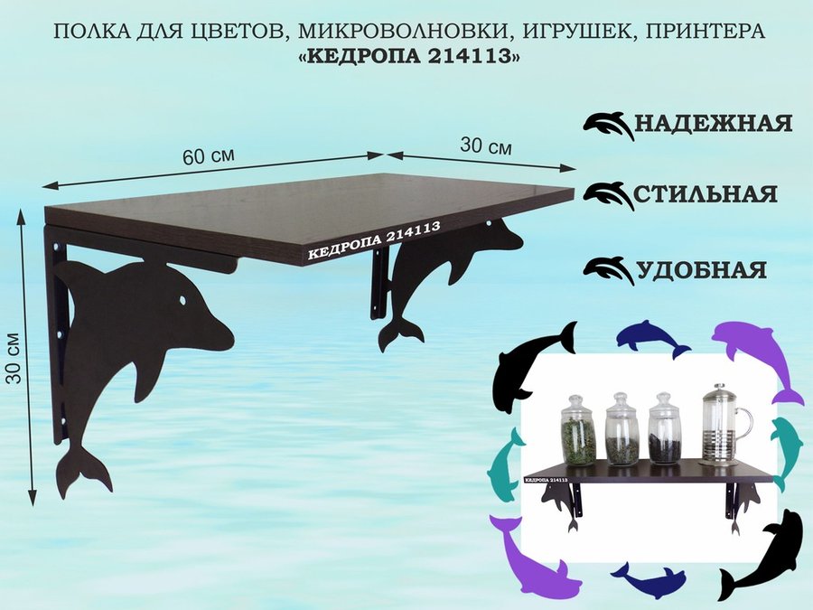 В корзину Купить в 1 клик Полка для цветов, микроволновки, игрушек, принтера "КЕДРОПА-214112"размер 30х60x30 см, черный, дуб