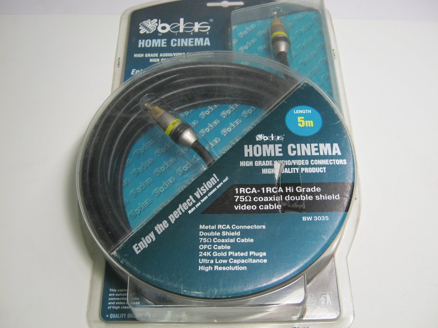 В корзину Купить в 1 клик Кабель 1RCA вилка / 1RCA вилка 5м., высококач. коакс. цифр.кабель, GOLD, 75 Ом, дв. экран BW3035