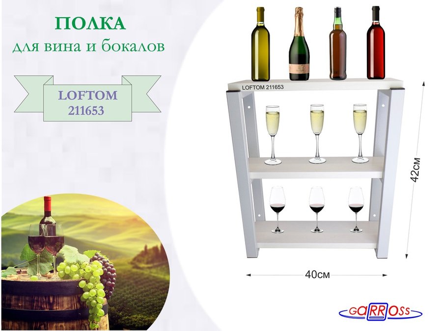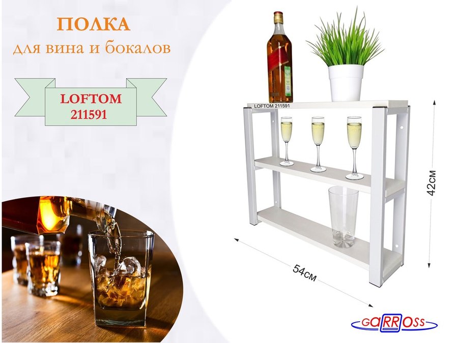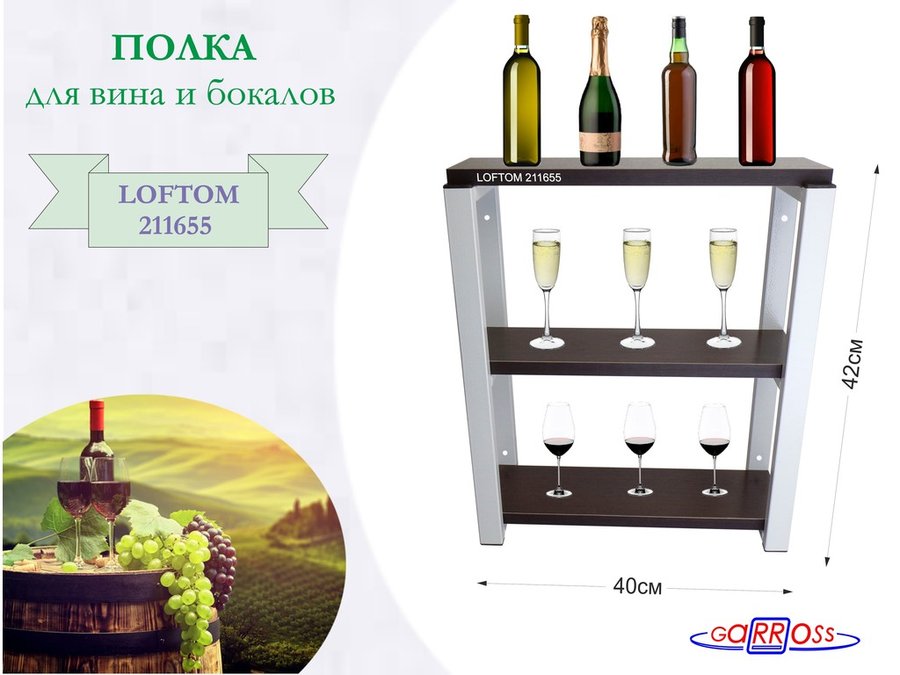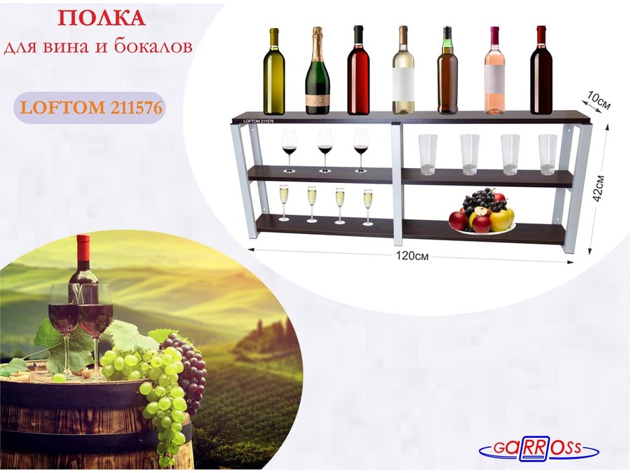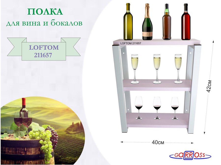 . Полки для вина и бокалов "LOFTOM" 3 уровня