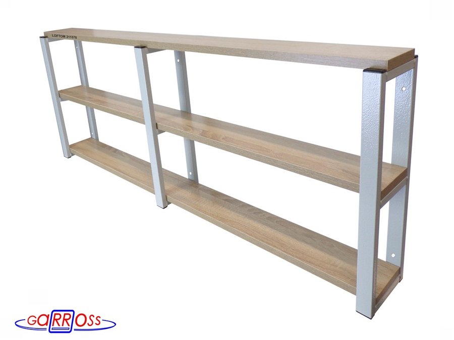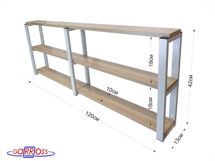 В корзину Купить в 1 клик Полка для вина и бокалов, высота 42см, 3 уровня, размер 10х120см, серая "LOFTOM 211578" дуб сонома