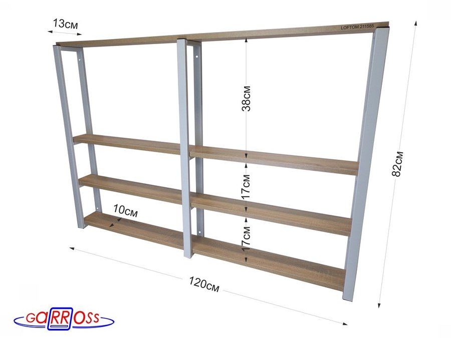 В корзину Купить в 1 клик Полка для вина и бокалов, высота 82см, 4 уровня, размер полки 10х120см, серая "LOFTOM 211585" дуб