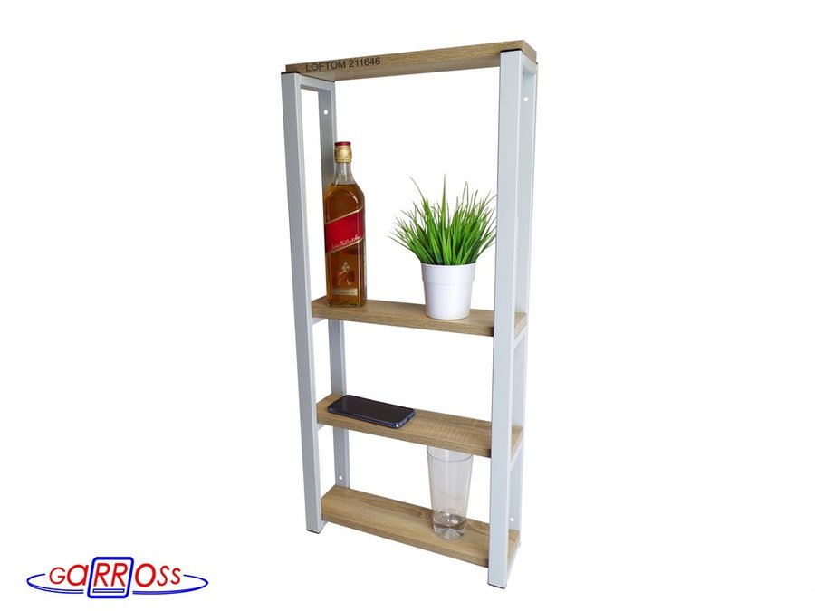 Полка для вина и бокалов, высота 82см, 4 уровня, размер полки 10х40см, серая "LOFTOM 211646" дуб