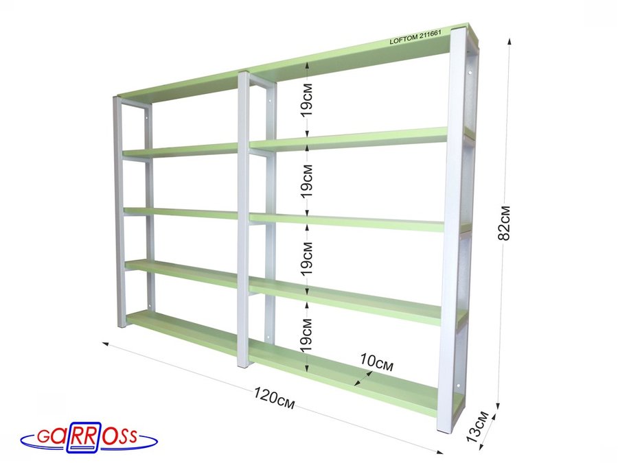 Полка для вина и бокалов, высота 82см, 5 уровней, размер 10х120см, серая "LOFTOM 211661" салатовый