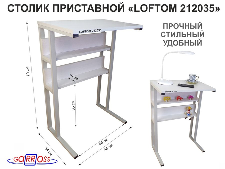 В корзину Купить в 1 клик Столик приставной, 79 см, серый "LOFTOM 212035" прикроватный стол журнальный с двумя полками, сосна