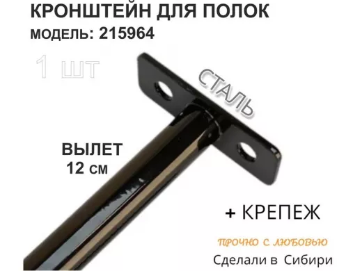 Кронштейн для скрытого крепления полок,12х120мм, черный, в наборе 1шт "SVORKAMAX-215964" без полки