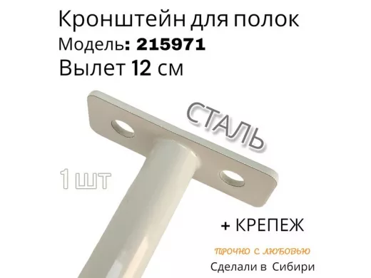 Кронштейн для скрытого крепления полок,12х120мм, серый, в наборе 1шт "SVORKAMAX-215971" без полки