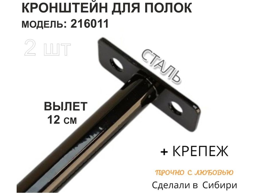 Кронштейн для скрытого крепления полок,12х120мм, черный, в наборе 2шт "SVORKAMAX-216011" без полки
