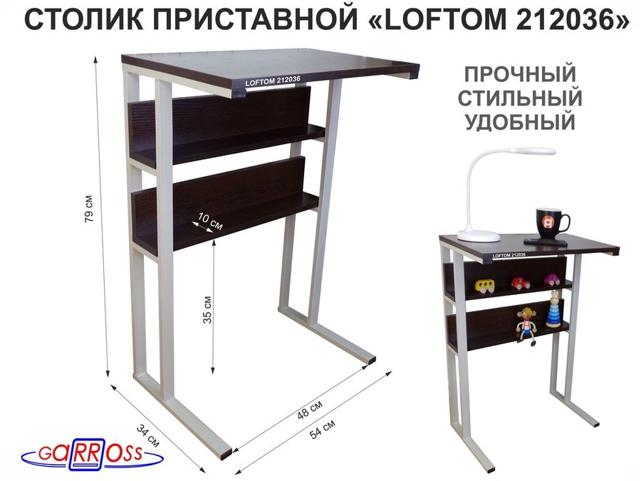 В корзину Купить в 1 клик Столик приставной, 79 см, серый "LOFTOM 212036" прикроватный стол журнальный с двумя полками, венге