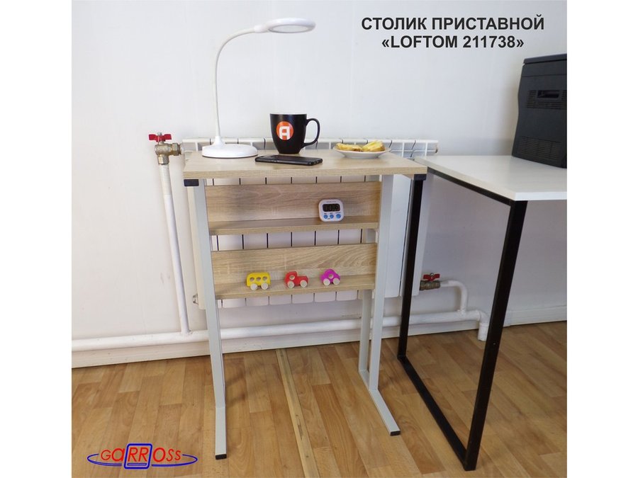 В корзину Купить в 1 клик Столик приставной, 79 см, серый "LOFTOM 211738" прикроватный стол журнальный с двумя полками, дуб