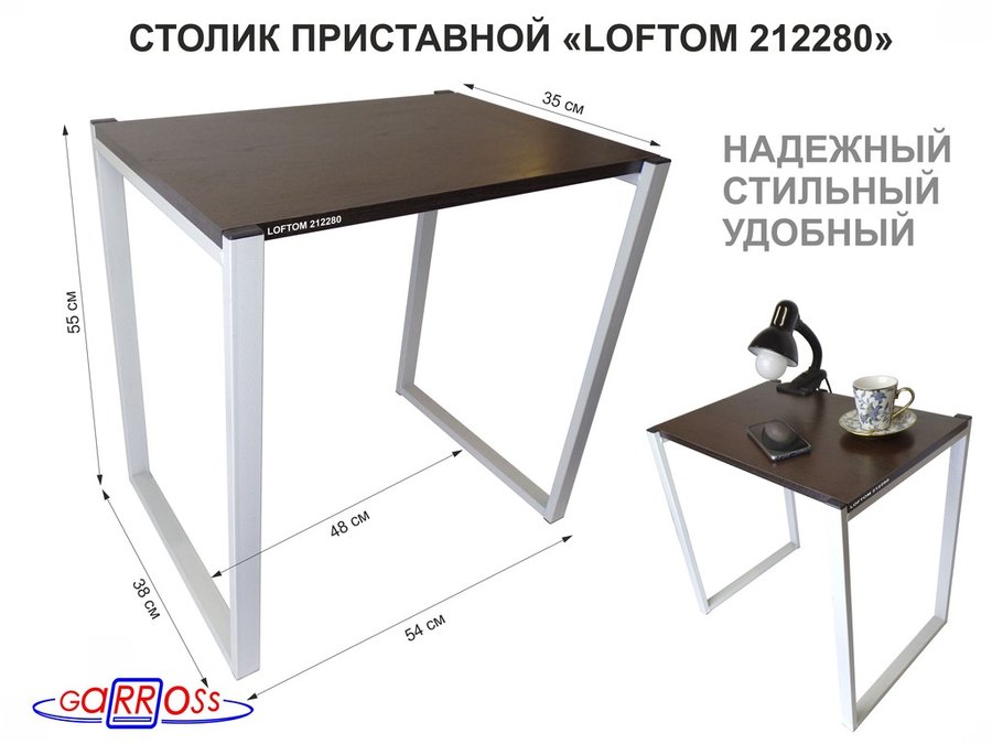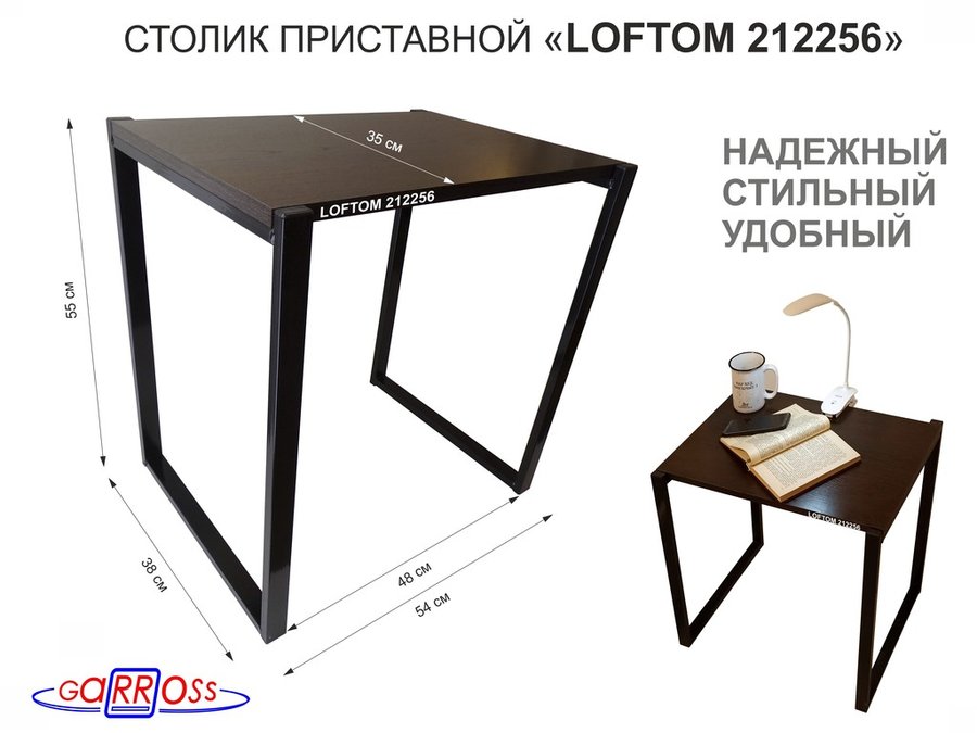 В корзину Купить в 1 клик Столик приставной 55см, серый "LOFTOM 212280" прикроватный стол журнальный, венге
