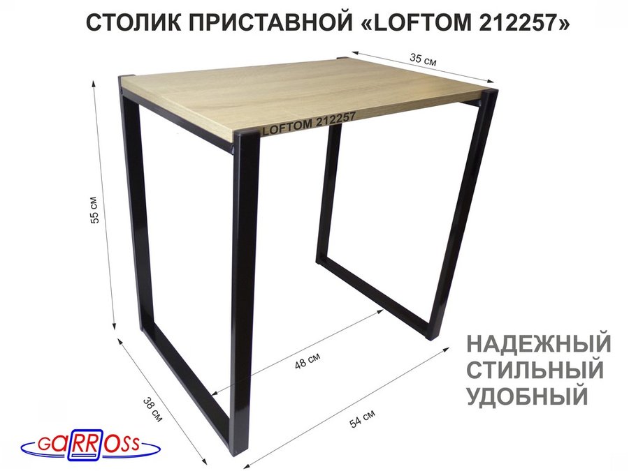В корзину Купить в 1 клик Столик приставной 55см, черный "LOFTOM 212257" прикроватный стол журнальный, дуб сонома