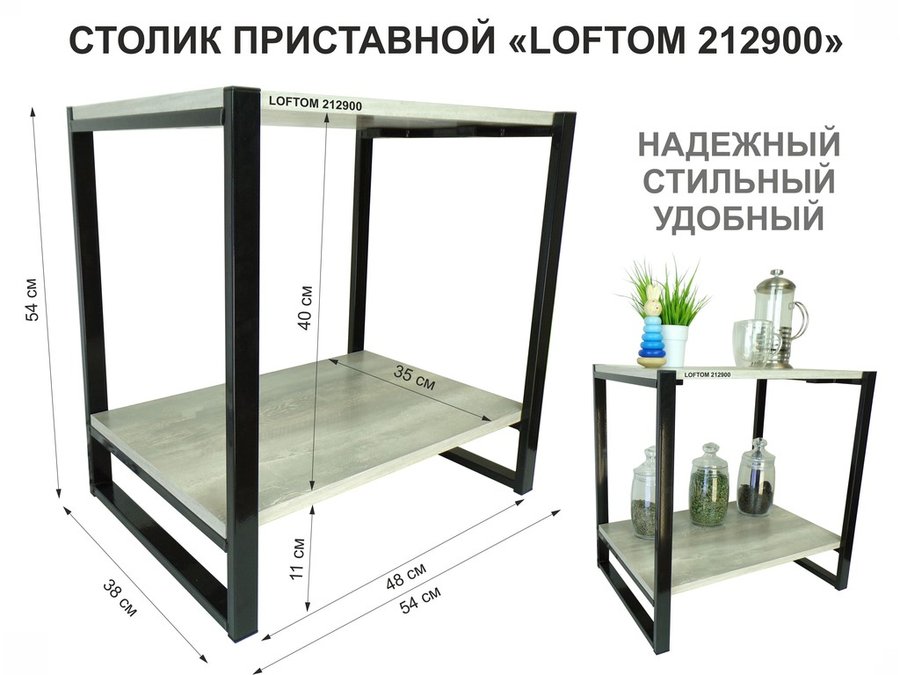 В корзину Купить в 1 клик Столик приставной, серый, 55см "LOFTOM 212899" прикроватный стол журнальный с полкой, лофт