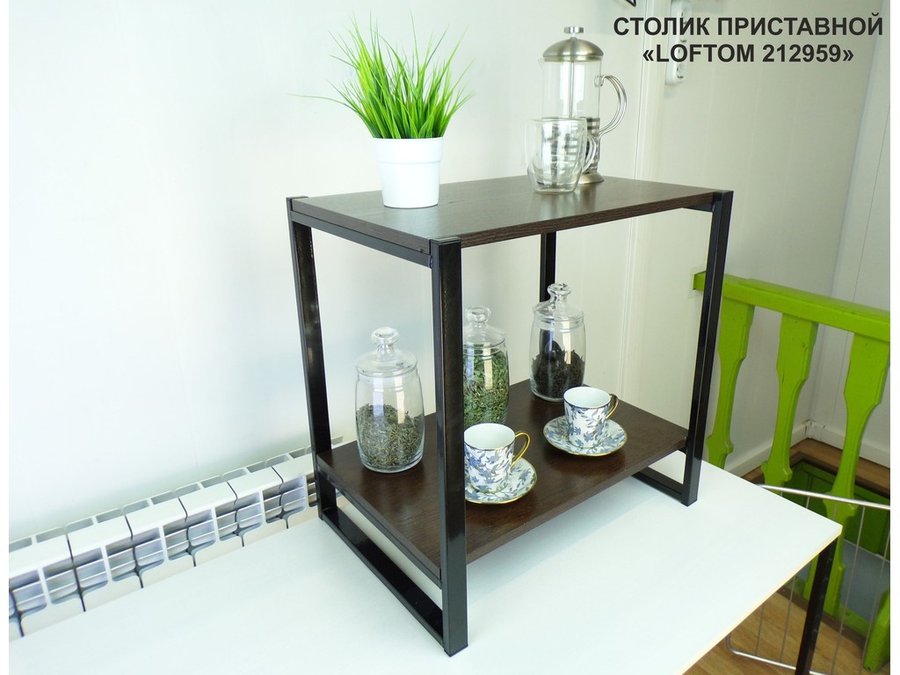 В корзину Купить в 1 клик Столик приставной, черный, 55см "LOFTOM 212959" прикроватный стол журнальный с полкой, венге