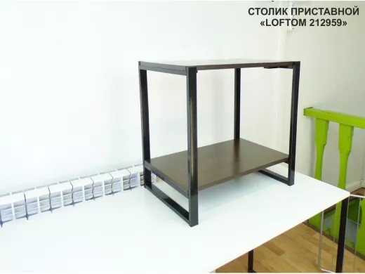 Журнальный приставной столик LOFTOM прекрасно впишется в любое пространство. Столик украсит Вашу гостиную, спальню или коридор. Можно использовать как придиванный кофейный столик, прикроватный столик для завтрака или как стол журнальный приставной. Важно отметить, что прикроватный столик занимает немного пространства, поэтому ему найдётся место даже в самой малогабаритной квартире. Прикроватный/журнальный столик, в стиле Лофт, может быть использован в качестве подставки для цветов и книг, места для работы, места для хранения мелочей.  Столик, без труда, можно перенести в любое место.