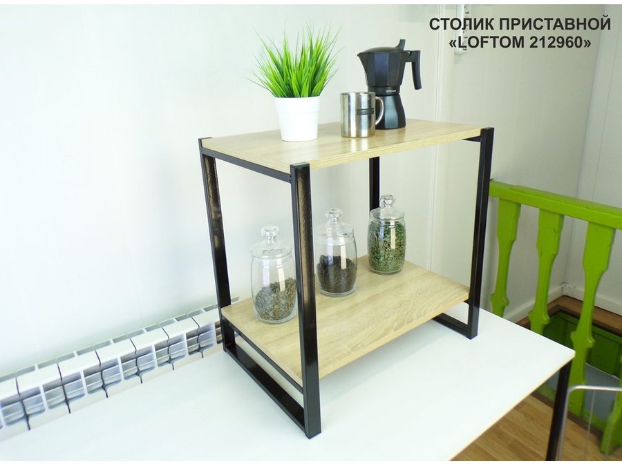 Журнальный приставной столик LOFTOM прекрасно впишется в любое пространство. Столик украсит Вашу гостиную, спальню или коридор. Можно использовать как придиванный кофейный столик, прикроватный столик для завтрака или как стол журнальный приставной. Важно отметить, что прикроватный столик занимает немного пространства, поэтому ему найдётся место даже в самой малогабаритной квартире. Прикроватный/журнальный столик, в стиле Лофт, может быть использован в качестве подставки для цветов и книг, места для работы, места для хранения мелочей.  Столик, без труда, можно перенести в любое место.