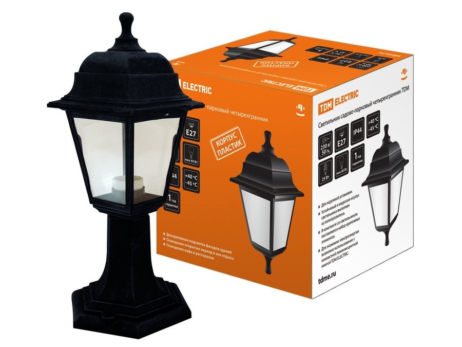 В корзину Купить в 1 клик Светильник садово-парковый НТУ 04-60-001 четырехгранник, стойка, пластик, черный TDM SQ0330-0705