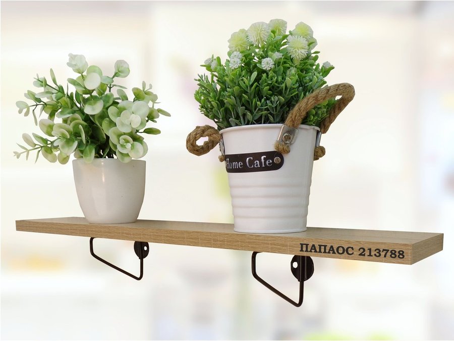 - Стильная полка в лофт-стиле. Простая конструкция изделия, позволяет добиться высокой надежности, а её минималистичный дизайн впишется абсолютно в любой интерьер. Полка идеально подойдет для косметики, сувениров, цветов и декоративных мелочей.