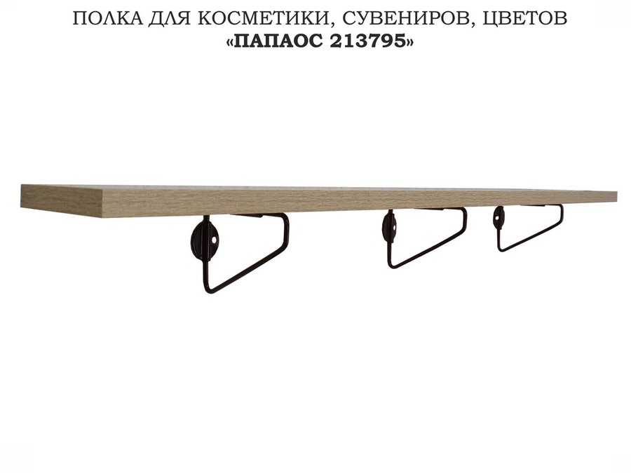 Полка для косметики, сувениров, цветов, 90х10 см, высота 9 см, черный "ПАПАОС 213795" дуб сонома