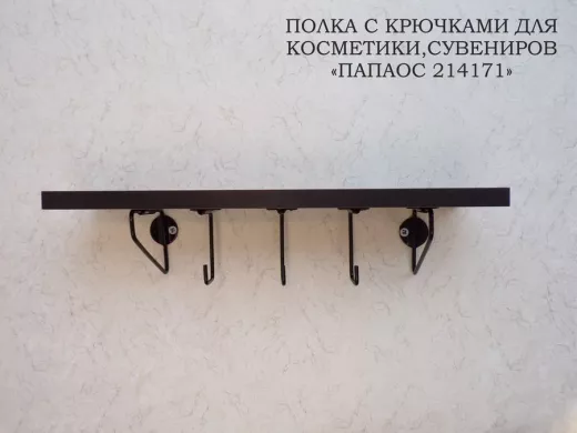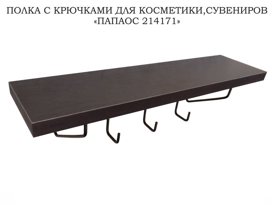 Ключница, полка с крючками в прихожую 40х10 см, высота 9 см, черный "ПАПАОС 214171" венге