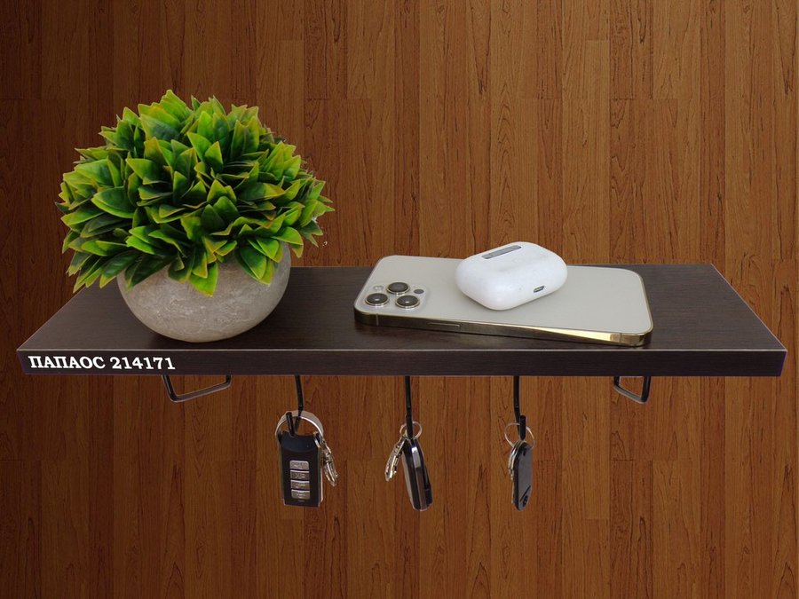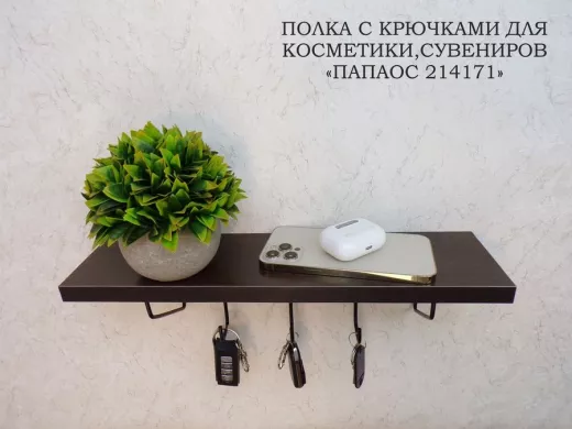 В корзину Купить в 1 клик Ключница, полка с крючками в прихожую 40х10 см, высота 9 см, черный "ПАПАОС 214171" венге