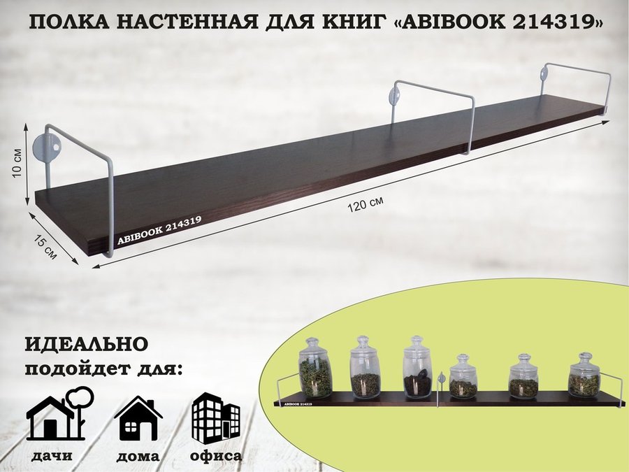 В корзину Купить в 1 клик Полка настенная для книг 15x120 см венге ABIBOOK-214319