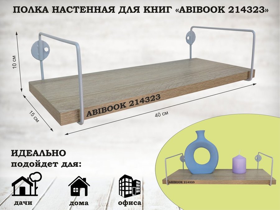 В корзину Купить в 1 клик Полка настенная для книг 15x 40 см дуб сонома ABIBOOK-214348