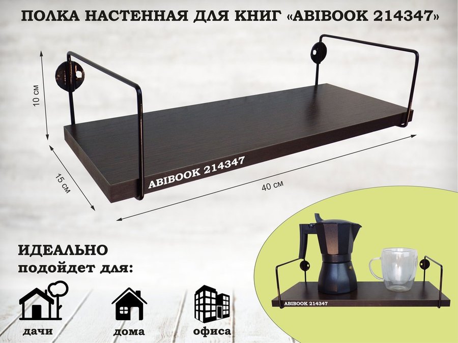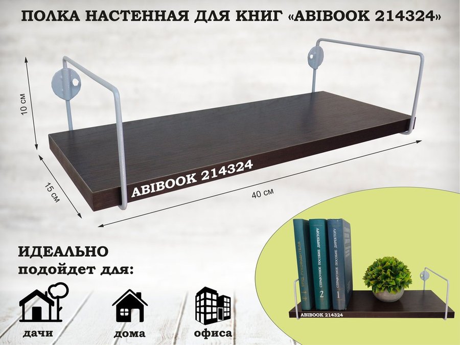 В корзину Купить в 1 клик Полка настенная для книг 15x 40 см венге ABIBOOK-214324