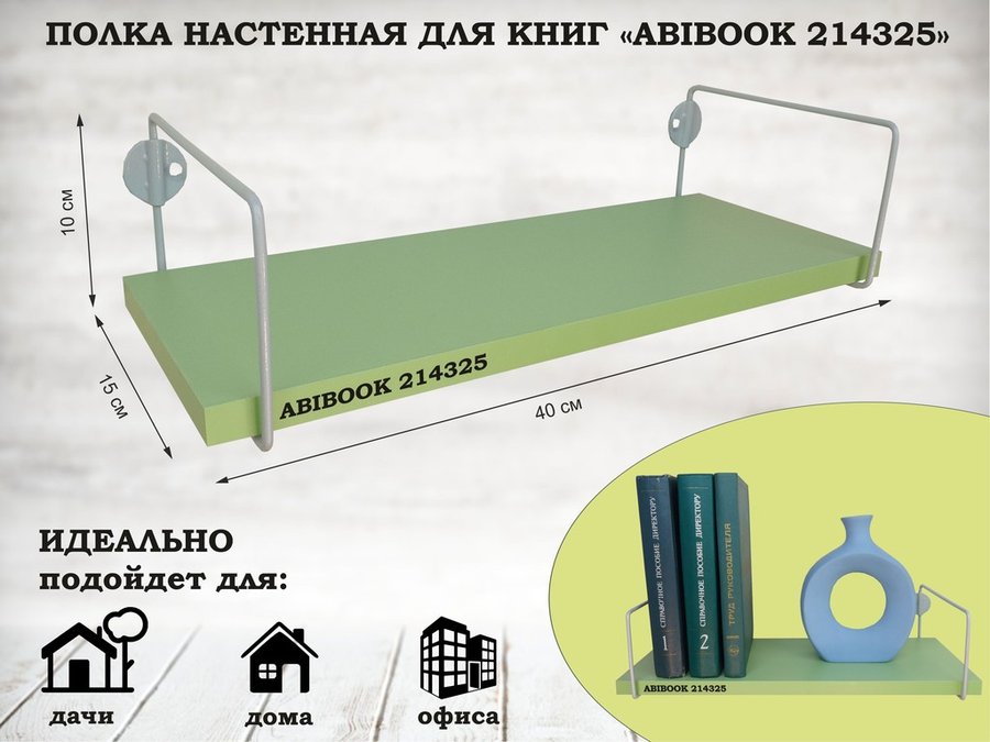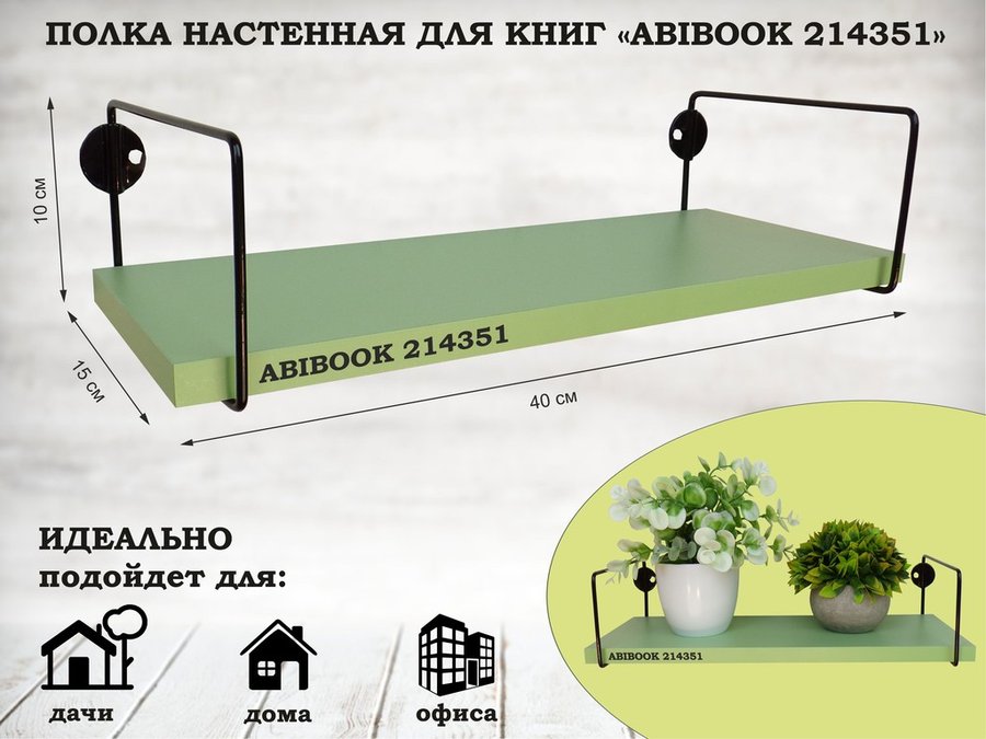 В корзину Купить в 1 клик Полка настенная для книг 15x 40 см салатовый ABIBOOK-214351