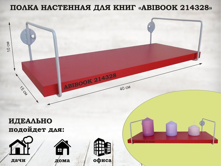 В корзину Купить в 1 клик Полка настенная для книг 15x 40 см красный ABIBOOK-214328