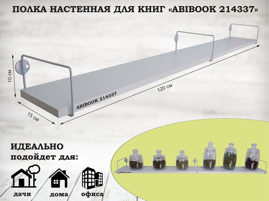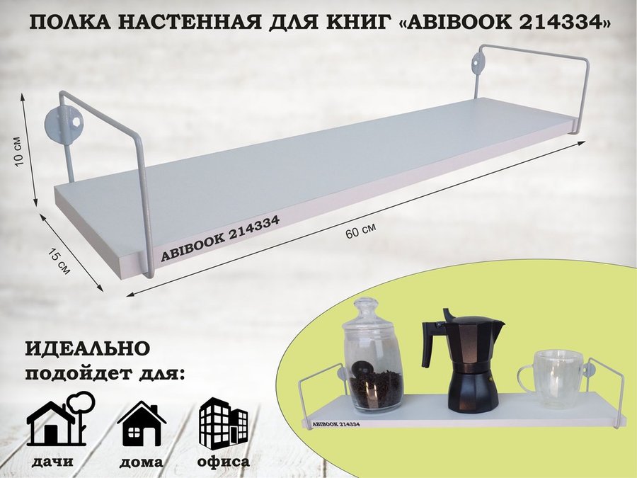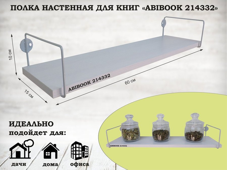 В корзину Купить в 1 клик Полка настенная для книг 15x 60 см белый шагрень ABIBOOK-214334