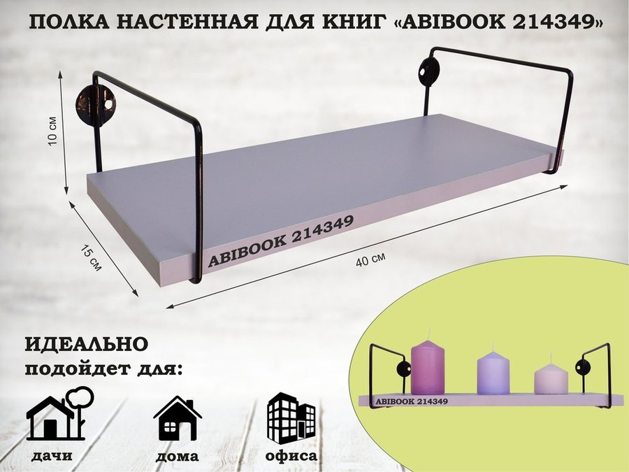 В корзину Купить в 1 клик Полка настенная для книг 15x 40 см лаванда ABIBOOK-214349