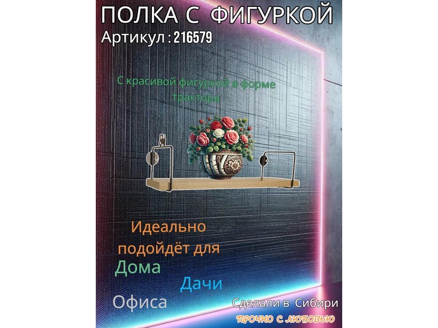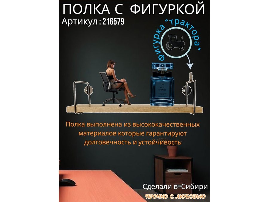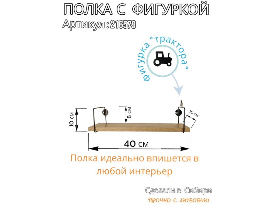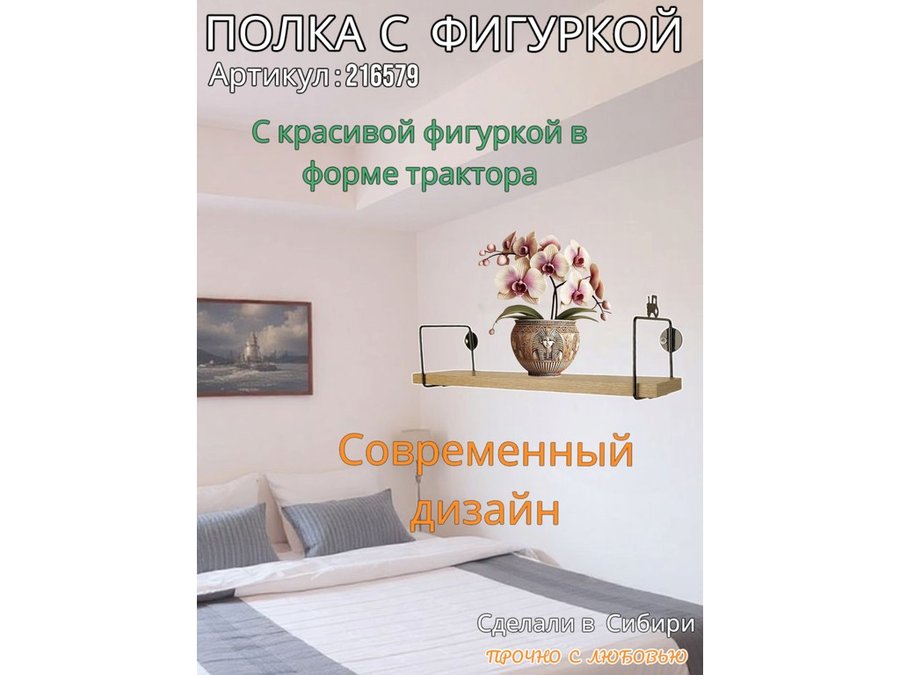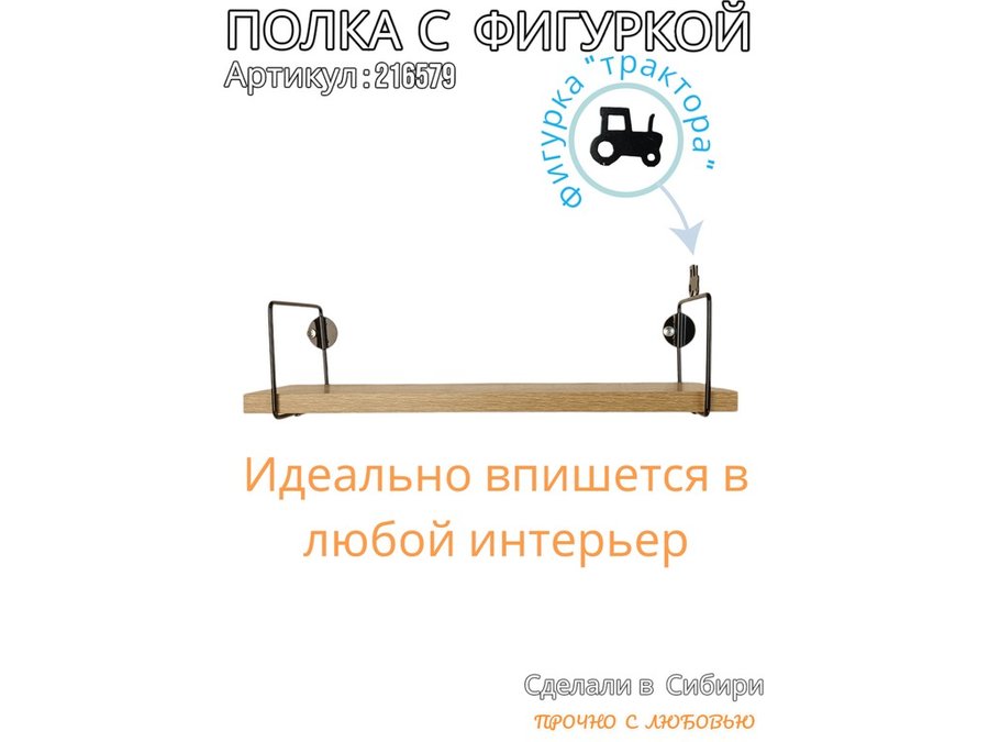Полка с фигуркой трактора "ABILOVE-216579" размер 10х40см ,черный ,дуб сонома