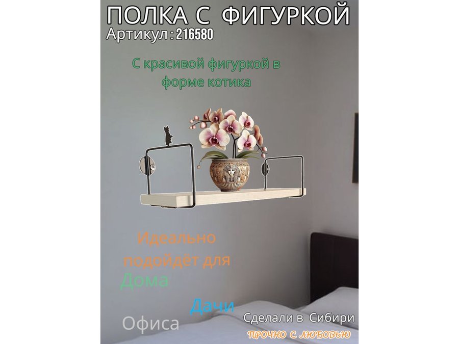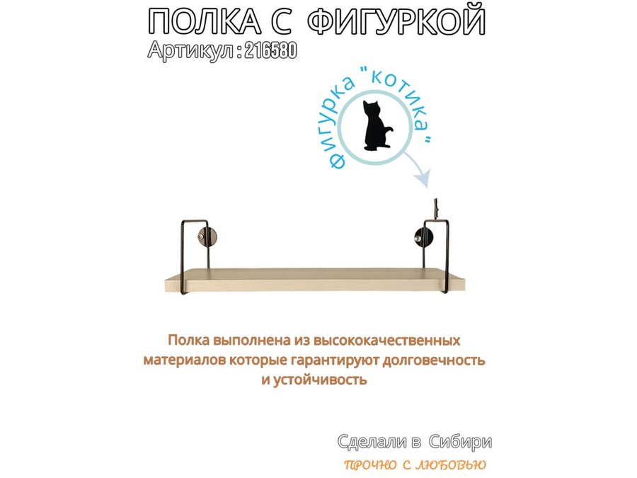 В корзину Купить в 1 клик Полка с фигуркой котика "ABILOVE-216580" размер 10х40см ,черный ,сосна выбеленная