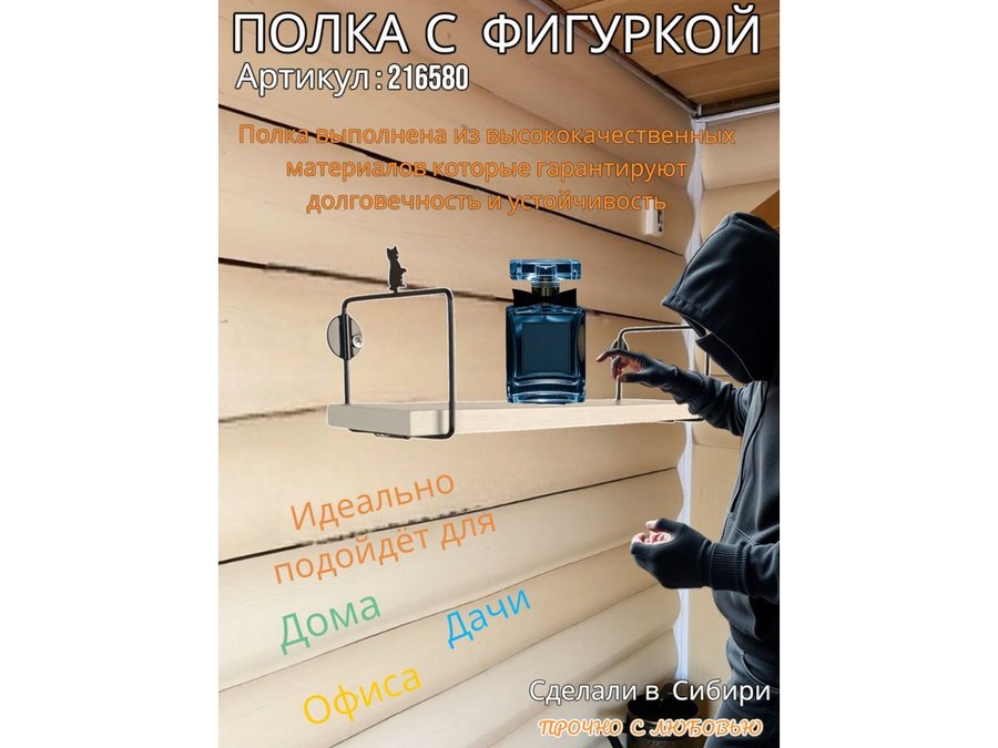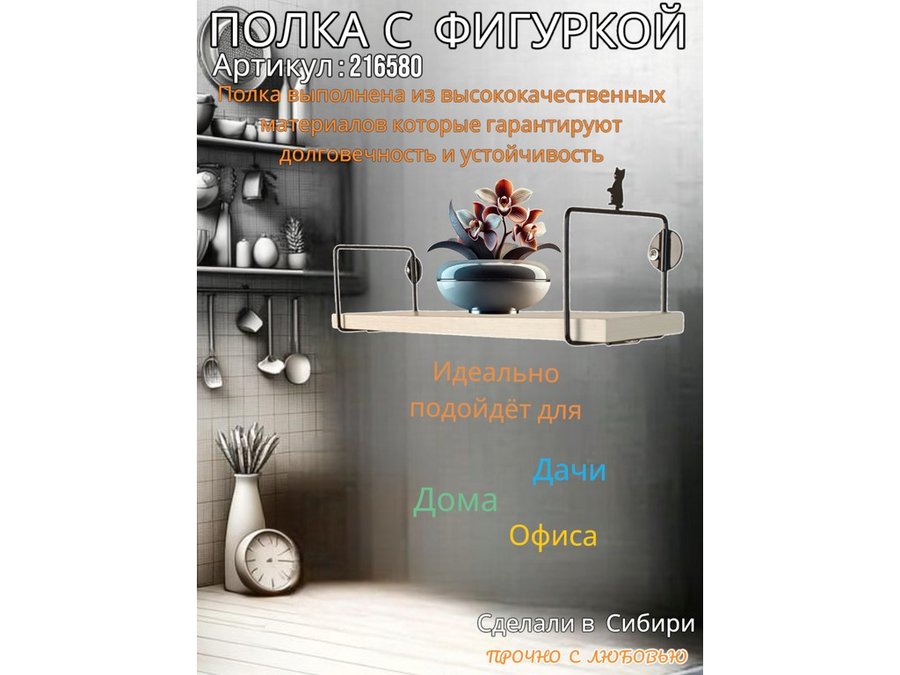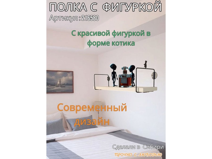 • Интересная полка с фигуркой, позволит разнообразить интерьер, сделать его непохожим, уникальным, запоминающимся.