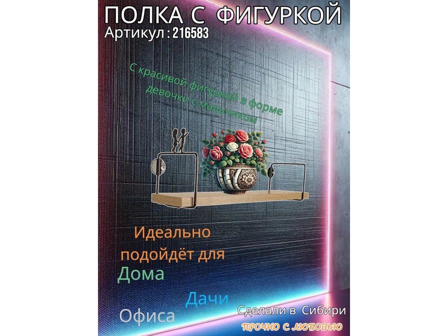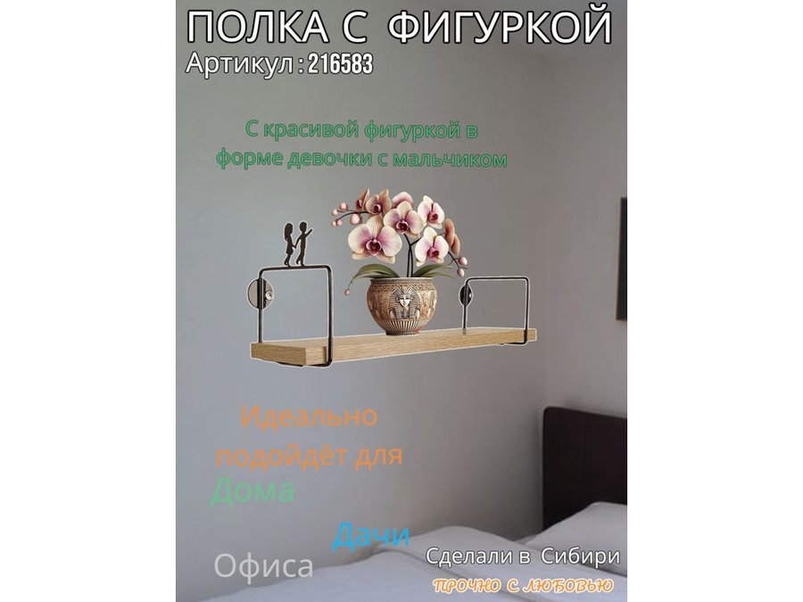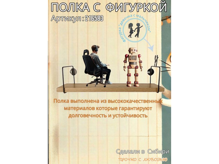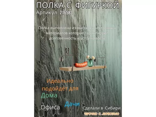 • Интересная полка с фигуркой, позволит разнообразить интерьер, сделать его непохожим, уникальным, запоминающимся.