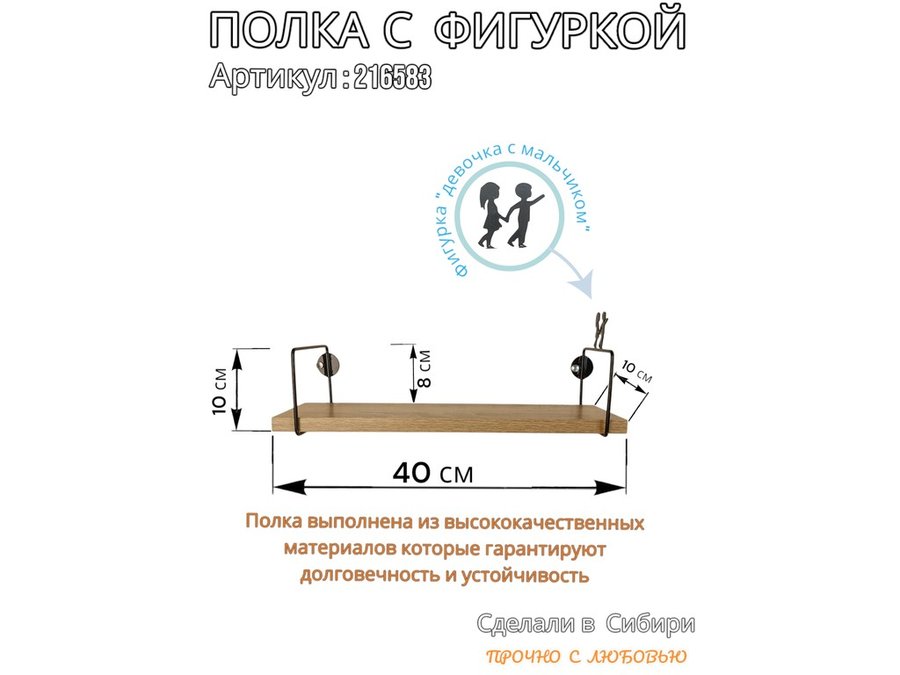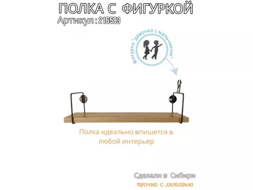 В корзину Купить в 1 клик Полка с фигуркой девочки с мальчиком "ABILOVE-216583" размер 10х40см ,черный ,дуб сонома